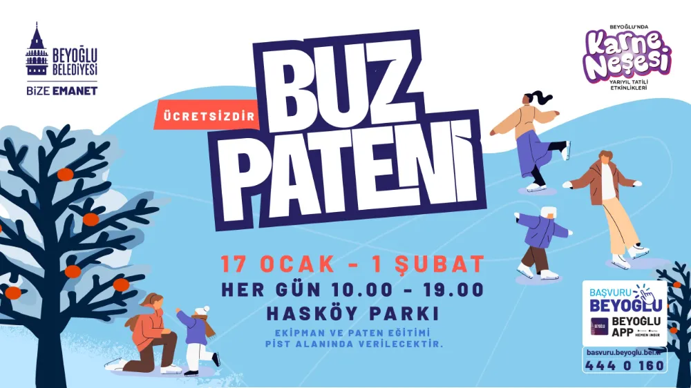 Yarıyıl tatiline giren çocuklar için ücretsiz buz pisti etkinliği düzenliyor. Tatil boyunca hizmet verecek buz pisti, 6–14 yaş arasındaki çocukları ücretsiz olarak ağırlayacak.